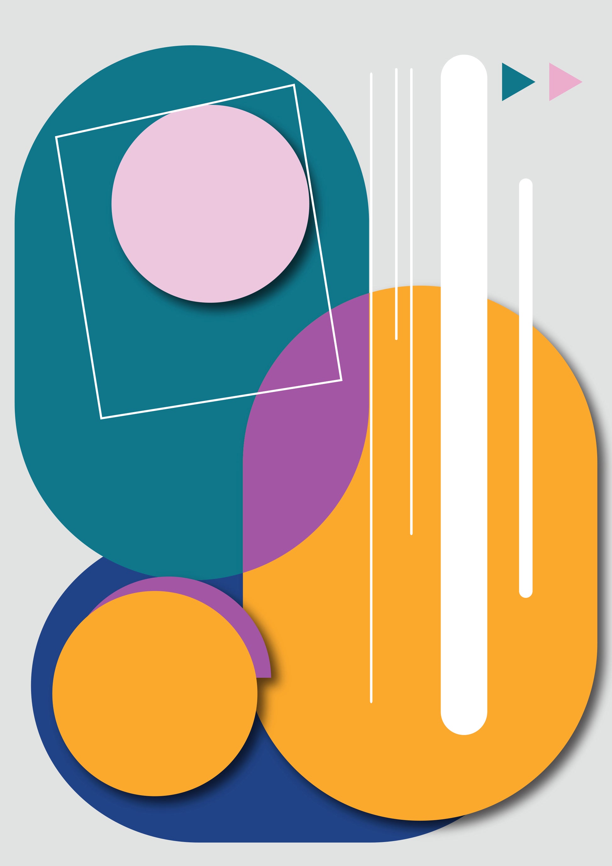 Stampa artistica geometrica raffigurante linee e ovali colorati. Il poster dallo stile moderno si adatta bene agli interni contemporanei.
