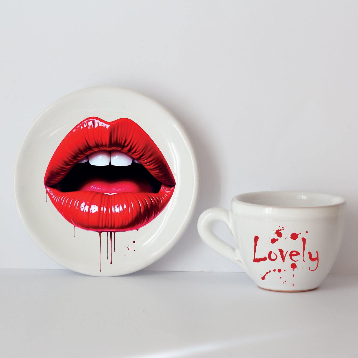 Realizzate a mano in Italia da artigiani ceramisti, con grafiche d'autore ispirate all'arte contemporanea o classico romantica, ogni pezzo unisce tradizione e creatività contemporanea, trasformando un semplice momento di pausa in un’esperienza estetica unica.