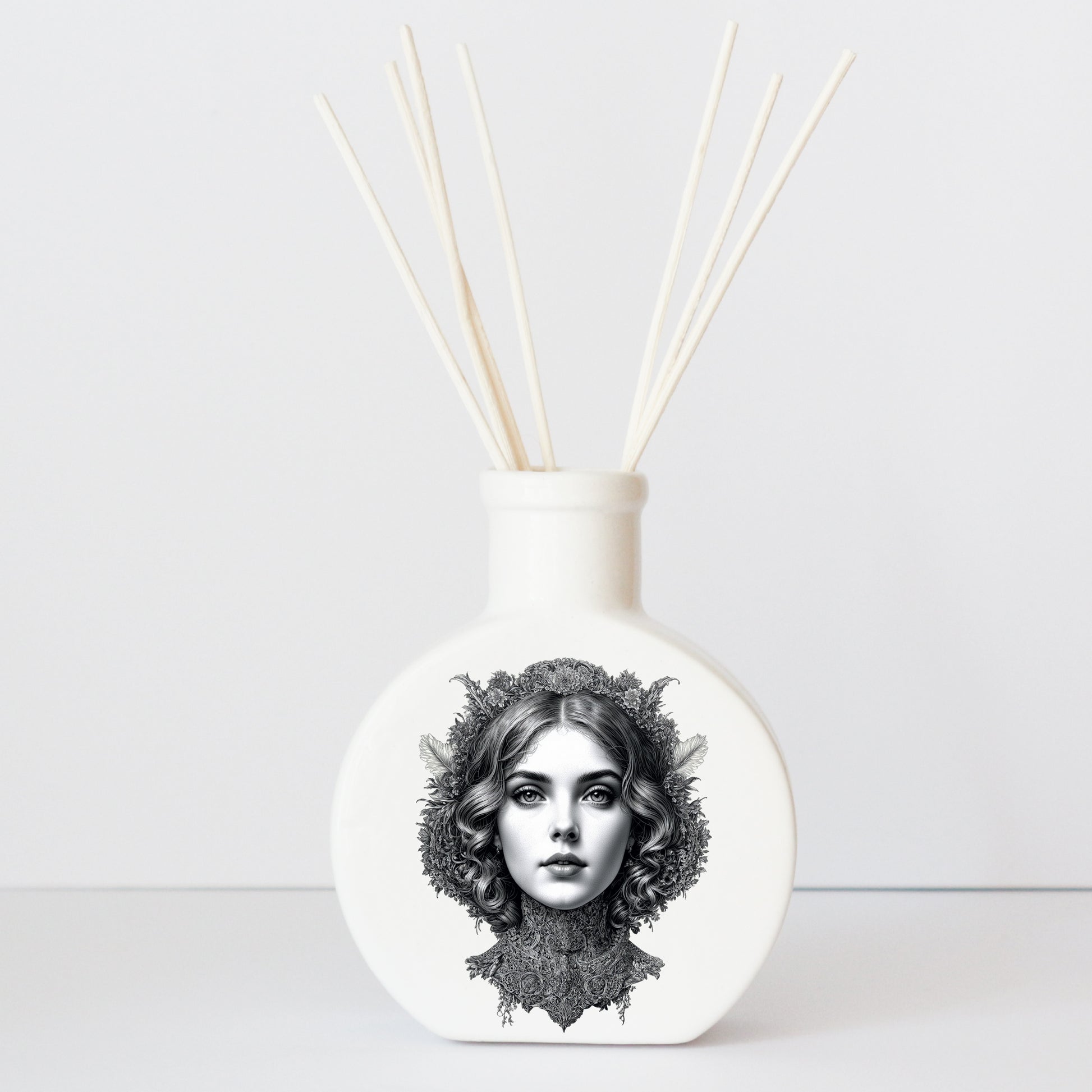Un profumatore d’ambiente in ceramica che racchiude la grazia e l’armonia dell’arte classico-romantica. Realizzato a mano da mastri ceramisti italiani, ogni pezzo è un piccolo capolavoro unico, impreziosito da una grafica d’autore che evoca eleganza, dolcezza e raffinatezza senza tempo.
