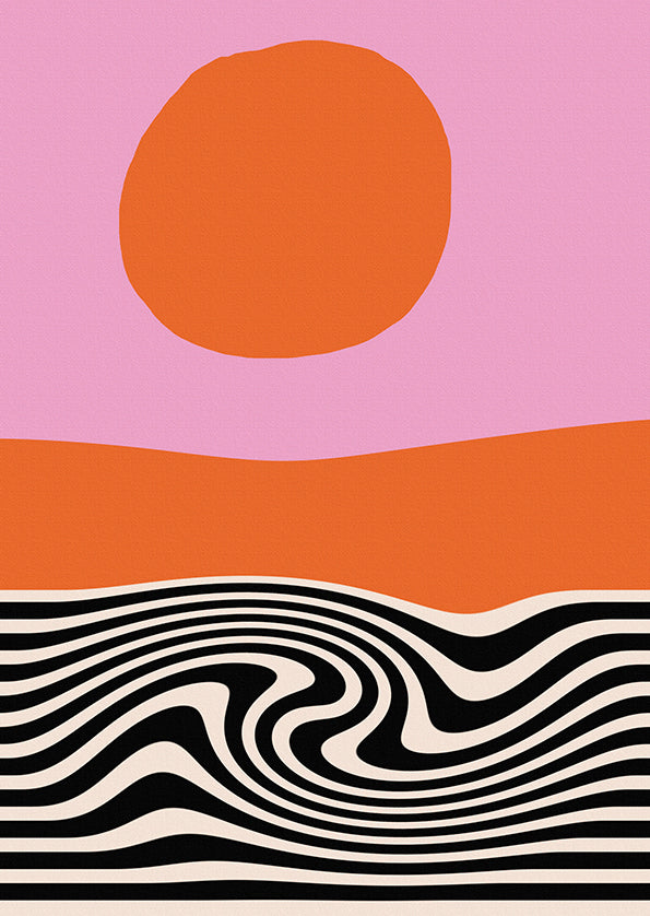 Poster con grafica d'autore per l'interior design; design eclettico che ricorda le atmosfere etniche delle distese di Savana, in cui zebre, leopardi, tigri e leoni sfilano al tramonto in un caldo pomeriggio d'agosto.