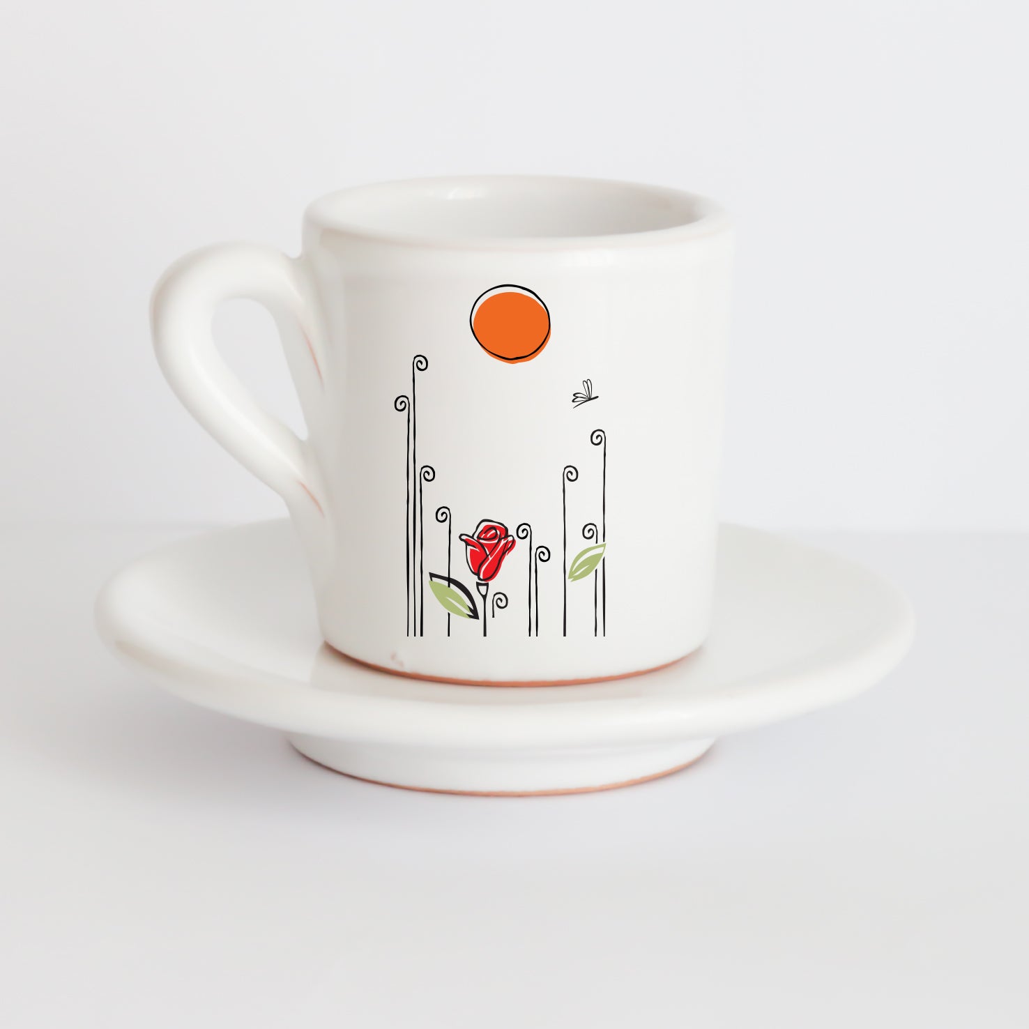 Ogni tazzina è una piccola opera d’arte: forme essenziali, smalti delicati e decori floreali che raccontano la bellezza e l’equilibrio del design artistico. Un set perfetto per valorizzare ogni momento, dal caffè quotidiano alle occasioni speciali.