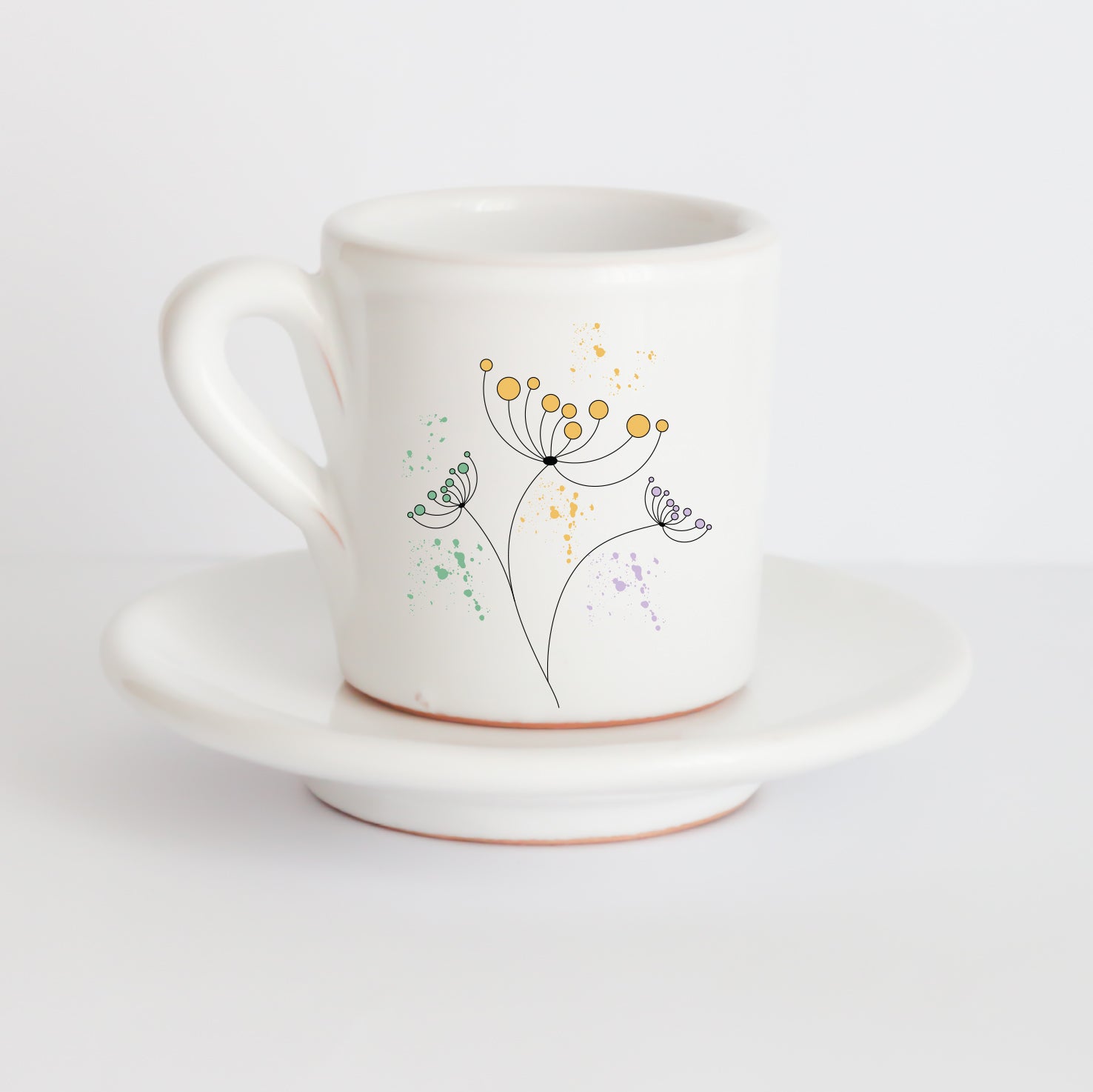 Ogni tazzina è una piccola opera d’arte: forme essenziali, smalti delicati e decori floreali che raccontano la bellezza e l’equilibrio del design artistico. Un set perfetto per valorizzare ogni momento, dal caffè quotidiano alle occasioni speciali.